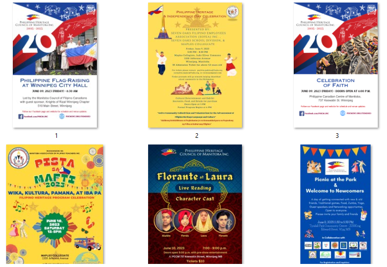 To our kababayans and Canadian friends, PHCM is pleased to feature six exciting events this June 9th to 11th. Everyone is welcome to any or all of these wonderful celebrations of Filipino heritage and culture. Special mention to the ‘Florante at Laura‘ Live Reading, a first-of-its-kind event. The event posters (click one to enlarge) are shown below, followed by their details in list form: