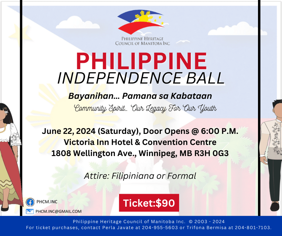 Tickets are now on sale, and they’re selling fast! Don’t miss your chance to be part of this exciting event. Invite your friends and family to join you for an evening of laughter, music, and cultural exploration. For ticket purchases, contact Perla Javate at 204-955-5603 or Trifona Bermisa at 204-801-7103.